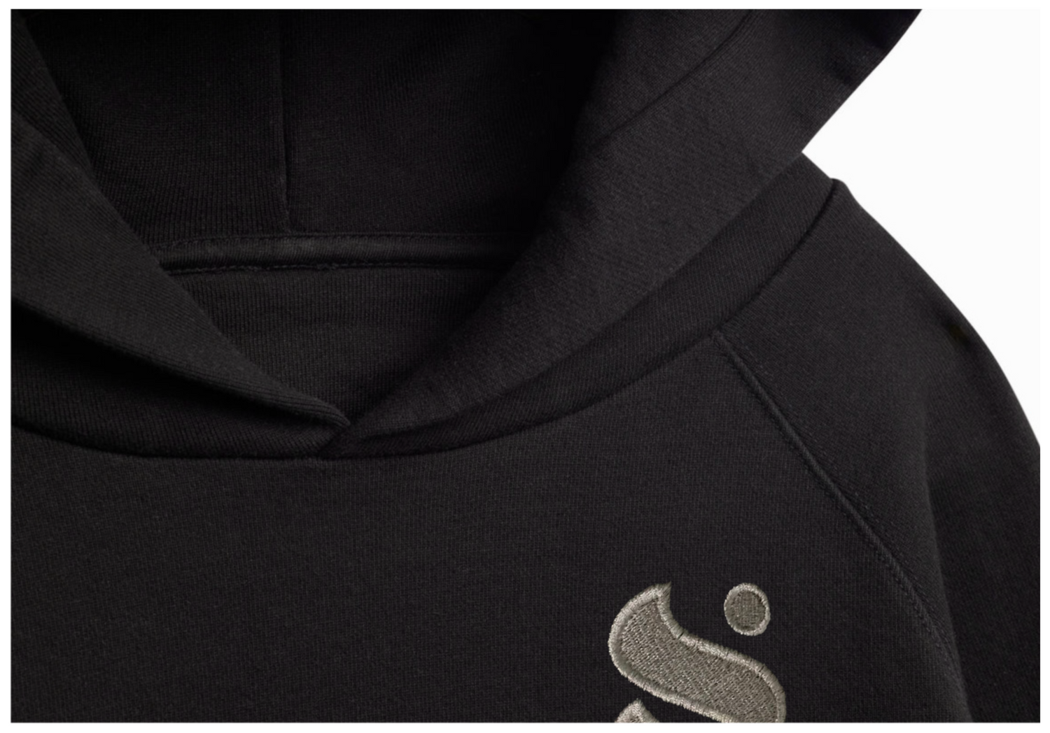 Logo is embroidered with metallic silver yarn